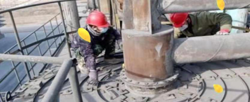 2月4日,組織人員對電石爐四層地坪與料管處漏洞利用澆注料進行密封,并預留出吊裝孔。