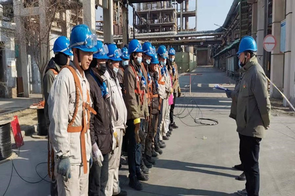 元旦過后,裝置領導開會安排放置光纖的任務,各級人員迅速投入其中,每天臨近上午下班前,相關班組辦理好登高證、檢修作業證、作業方案及工作危害分析,把需要放置的光纖盤拉到指定位置擺放整齊,準備好五樁一門和警戒帶,下午1點30分,所有作業人員系好安全帶,戴上防毒口罩、棉帽子到達現場,落實完各項安全措施,確認具備條件,作業負責人現場進行安全技術交底,交底完畢后,大家有序地爬上橋架,下面的人有拉光纖的,做標記的,往上送的,口哨一響,大家鼓勁使力、齊步向前,光纖一段一段整齊的放置于橋架內,在這幾天放置光纖的過程中,乙炔站和六萬噸離子膜光纜距離較長,好幾位年長的師傅并沒有因為年齡大而推脫,同樣是系好安全帶,穿戴齊全防護用品,早早地上到橋架上,找到合適的位置,安全帶系掛牢靠后,聽從指揮,保證了放置光纖的任務提早完成。
