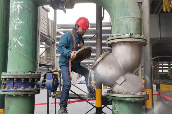 上下齊心其利斷金,同舟共濟凝心聚力。本計劃檢修時長是12小時,因為檢修工作量大一直加班到晚上十點多,但檢修現場聽不到一句怨言,能聽見的是導鏈、撬棍和電氣焊的聲音。