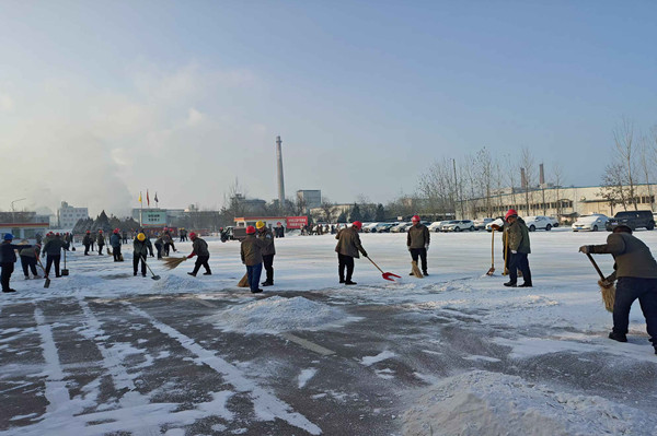 在除雪過程中,領導們始終與員工們并肩作戰,他們不僅是指揮者,更是參與者。當遇到積雪結冰難以清理時,領導們與員工們共同商議對策,現場調配資源。他們親自上陣,與員工們一起喊著口號,齊心協力將積雪堆攻克。