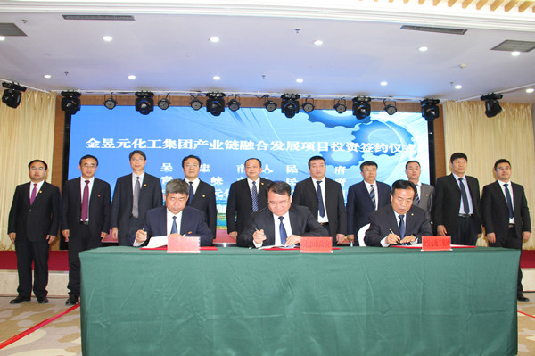 金昱元化工集團(tuan)總裁陳文泓代表公司和(he)吳忠市(shi)、青(qing)銅(tong)峽(xia)市(shi)政府(fu)簽(qian)訂(ding)產業鏈融合發展項(xiang)目協(xie)議。