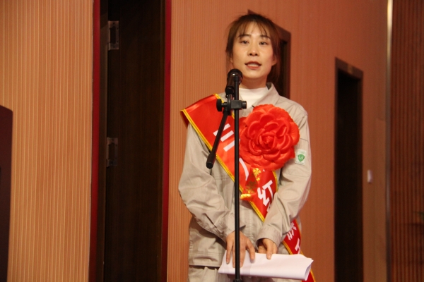 女職工代表楊芙蓉發言。她向集團公司對廣大女職工們的關愛表示衷心的感謝,為企業給她們提供實現自身價值的廣闊平臺表示誠摯的謝意。她號召全體女職工共同努力,勇挑重擔、務實苦干,為開創金昱元更加輝煌燦爛的明天踔厲奮發、不斷前行。