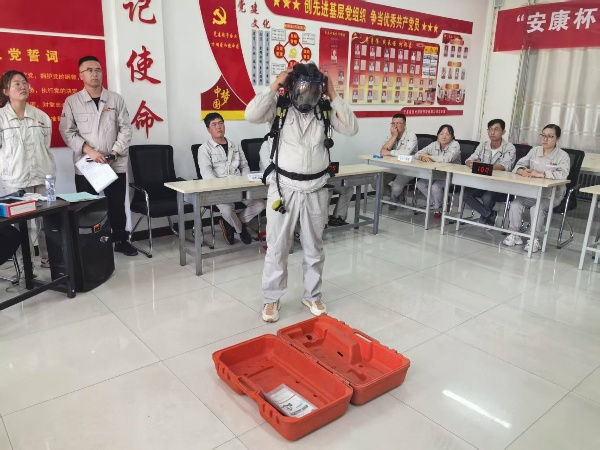 比賽現場,參賽隊員們個個精神抖擻、斗志昂揚。“心肺復蘇操作”“正壓式空氣呼吸器穿戴”兩個項目,選手們爭分奪秒卻有條不紊:檢查患者意識和呼吸、檢查氣瓶壓力、調整背帶松緊、佩戴面罩并測試氣密性……一套流程行云流水,展現出扎實的技能功底與高度的安全意識。活動現場,公司安全總監鐵旭東、安全主管何寧、海什全程監督評分,并針對操作細節進行實時監控,將比賽轉化為安全培訓課堂,達到競賽和培訓相結合。參賽職工紛紛表示,通過比武不僅提升了應急處置能力,更深刻體會到規范操作的重要性。