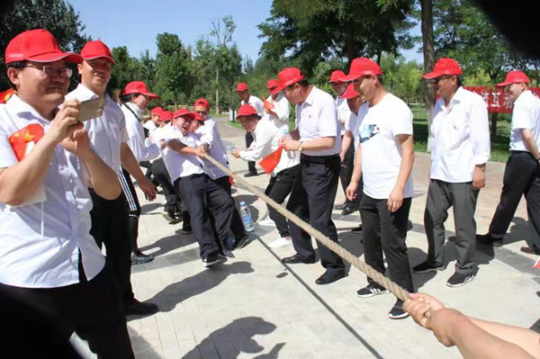 為豐富(fu)活(huo)動(dong)(dong)形式,增強(qiang)黨員(yuan)的(de)交流互動(dong)(dong),放(fang)松緊張的(de)工(gong)作情緒,活(huo)動(dong)(dong)結合學黨章黨規,組織開展了黨的(de)知識答題接力賽(sai)(sai)和拔河比(bi)賽(sai)(sai)。拔河比(bi)賽(sai)(sai)中,三個支(zhi)部(bu)選拔精兵強(qiang)將,循環(huan)比(bi)賽(sai)(sai)。經過激烈比(bi)拼,資源再生公(gong)司黨支(zhi)部(bu)獲得第一名,公(gong)司黨委為優勝隊(dui)頒發了紀念品。